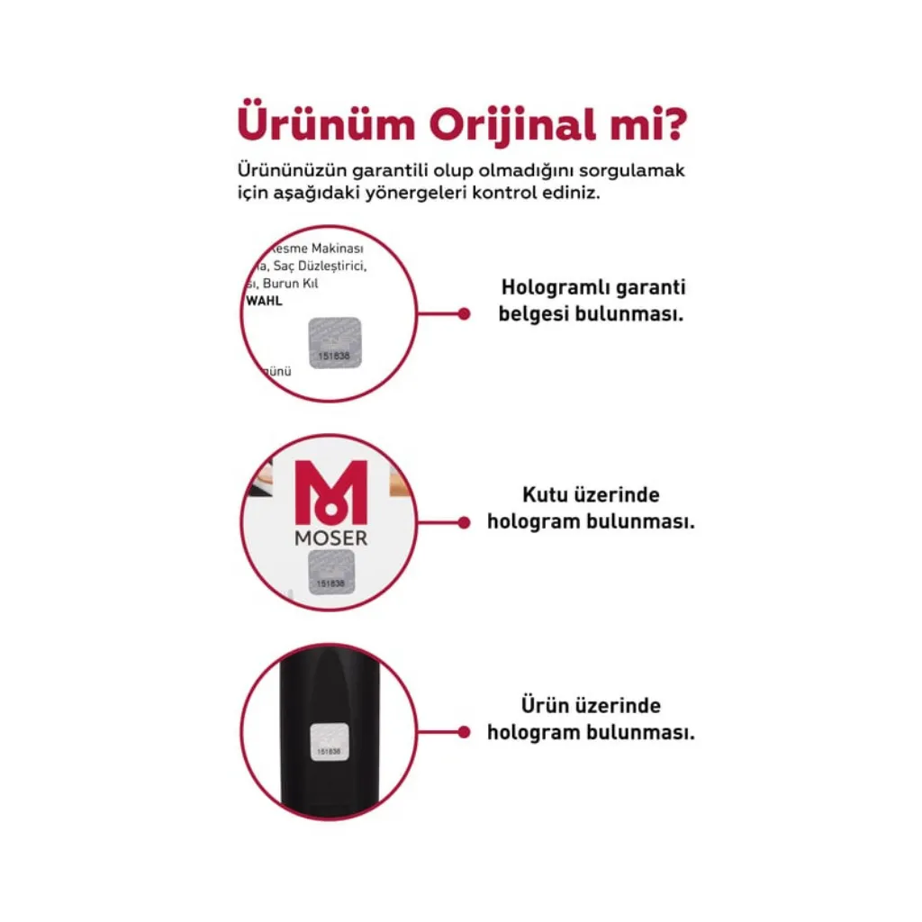 Moser, Wahl Traş Makinası, Ermila Tıraş Makineleri İthalatçı Firma ve Türkiye Distribütörü İtimat Lüks Hırdavat SAN. Ve TİC. A.Ş tarafından 2 yıl süre ile Garanti kapsamındadır.